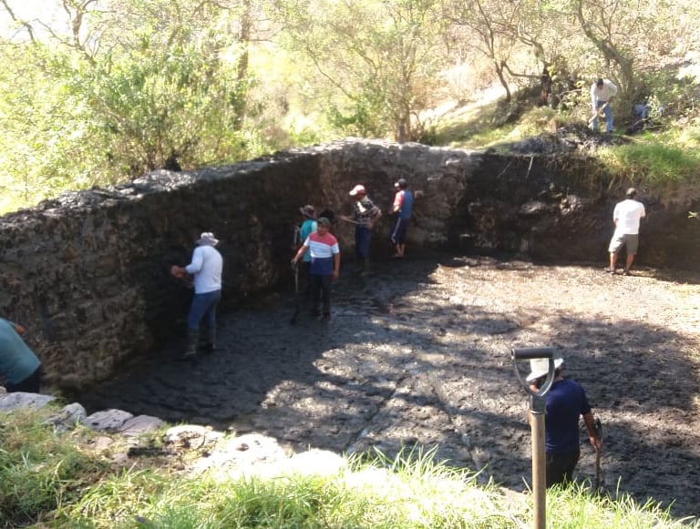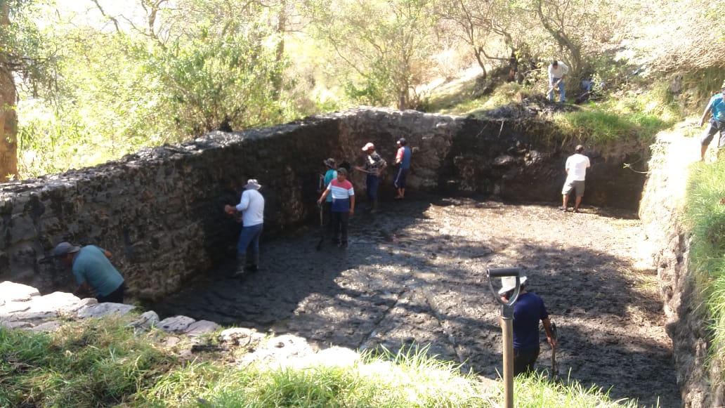 Cleaning accumulated silt from a reservoir at Simapuqio.