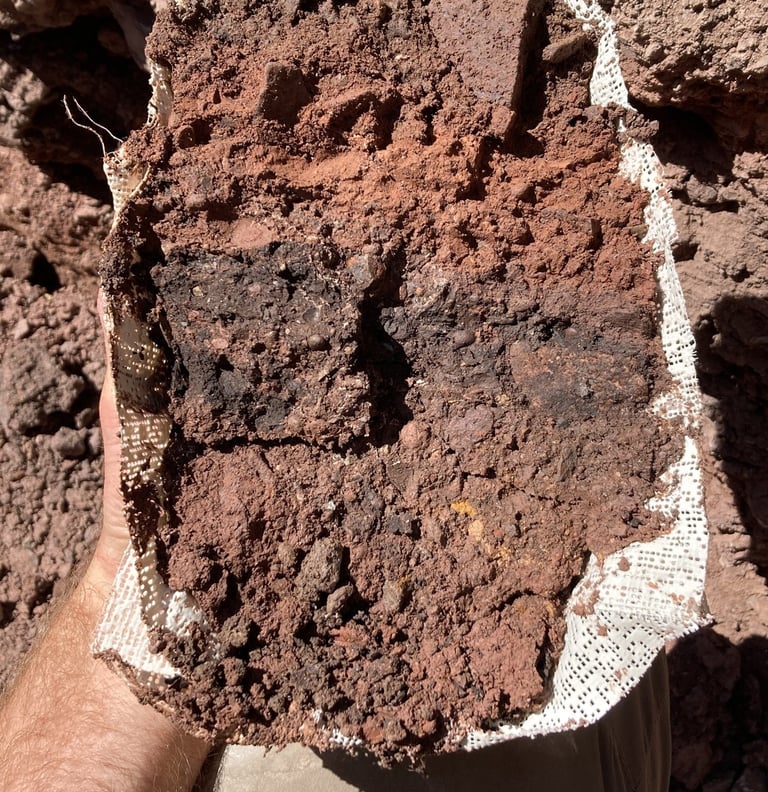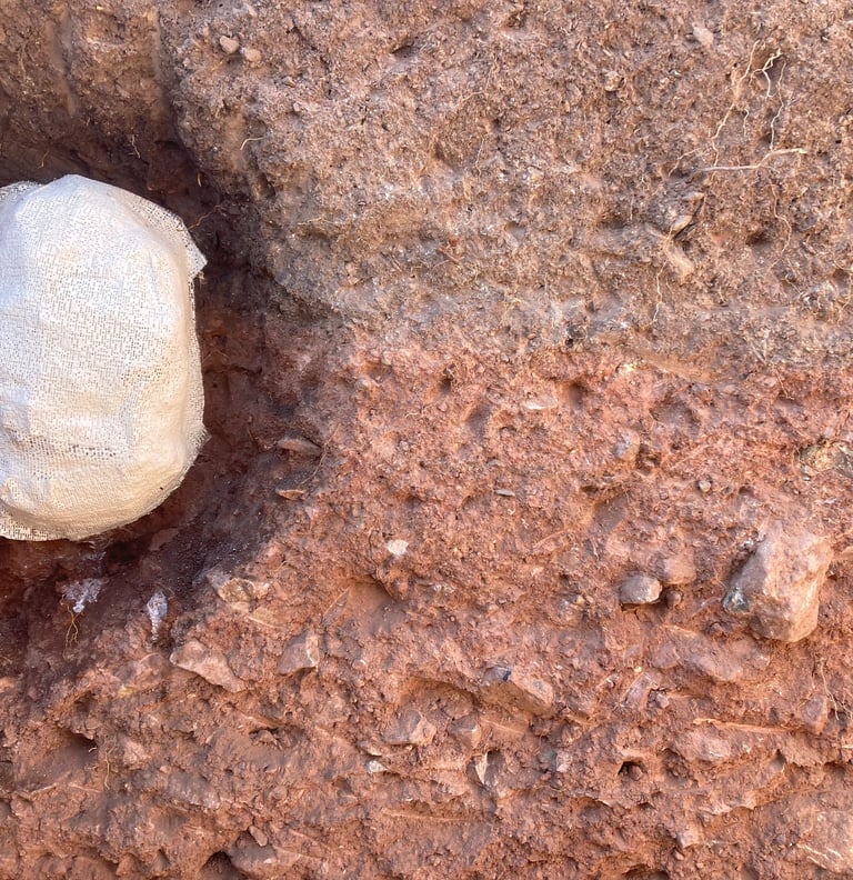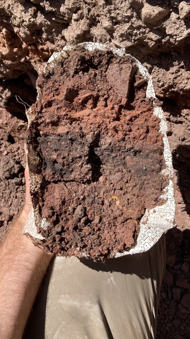 A key component of the Ollantaytambo Terraces Project are excavations in terraces designed to clarify when they were built and renovated, expose construction techniques, and evaluate soil types. During excavations we sample for radiocarbon dating, microbotanical analysis, and soil micromorphology. Photos from top left: The 2022 excavation team in a trench at Ollantaytambo; preparing a micromorphology sample; an extracted micromorphology sample preserving stratigraphy; and a sample in situ across a stratigraphic transition.